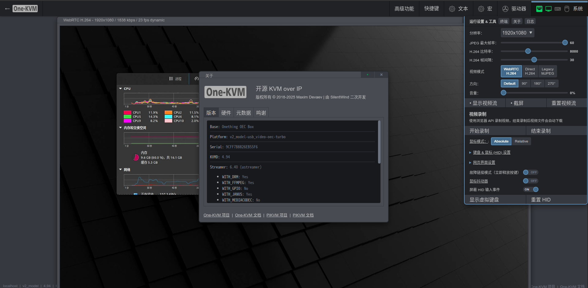 优势是其 VPU 驱动是开放的, One-KVM 为此硬件适配了 H264 硬件编解码,能获得更好的 H264 视频体验。